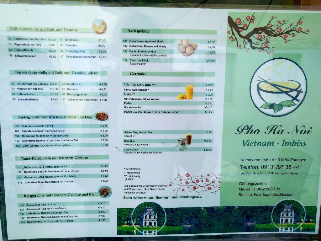 Introducing the Menu at Pho Ha Noi / Erlangen